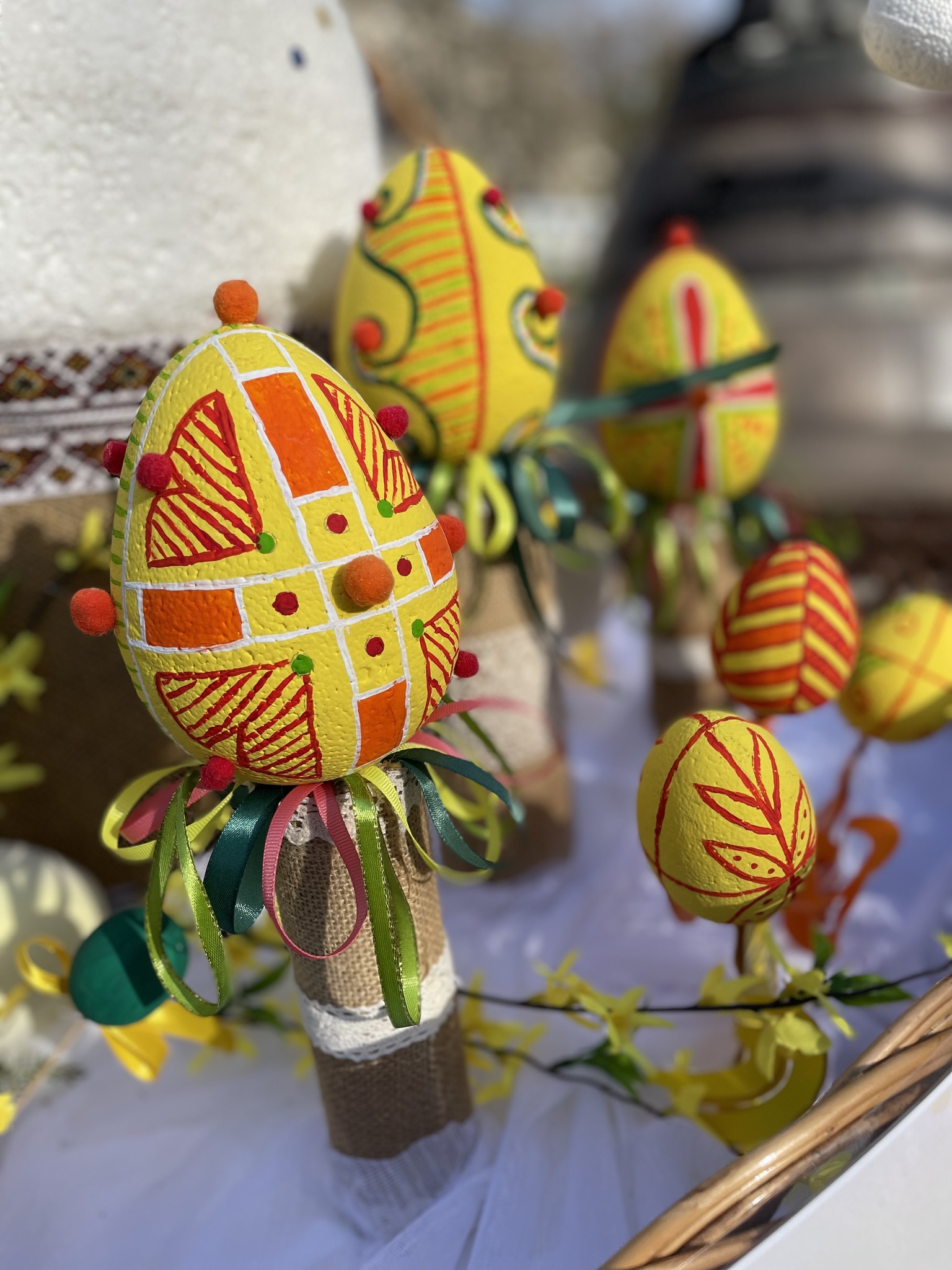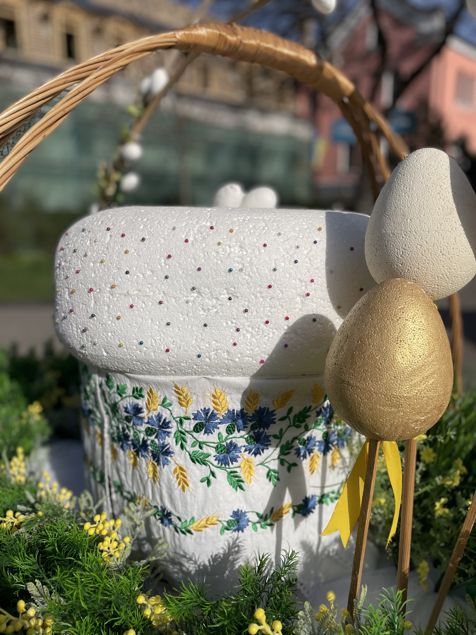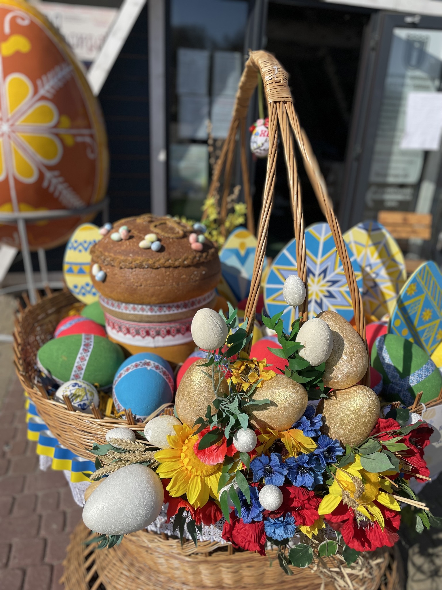 На локаціях у центрі Тернополя розміщено п’ять декоративних великодніх кошиків. У їхньому оформленні використано традиційні елементи: лозу, рушники, крашанки та символічні паски. Також встановлено одинадцять великоформатних писанок — на спеціальних високих підставках. Ці арт-об’єкти розміщені у різних частинах центральної частини міста.