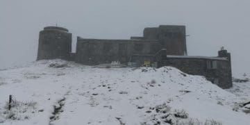 “Станом на 09:30, 12.10.2021 на горі Піп Іван Чорногірський хмарно, туман, температура повітря −1°С, вітер південно-західний, 5 м/с, падає сніг”, — йдеться в повідомленні.