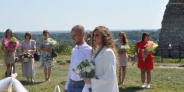 Молодята можуть обирати місце реєстрації за власним бажанням. Перша пара молодят Ірина і Юрій вирішила брати шлюб на Замкові горі.