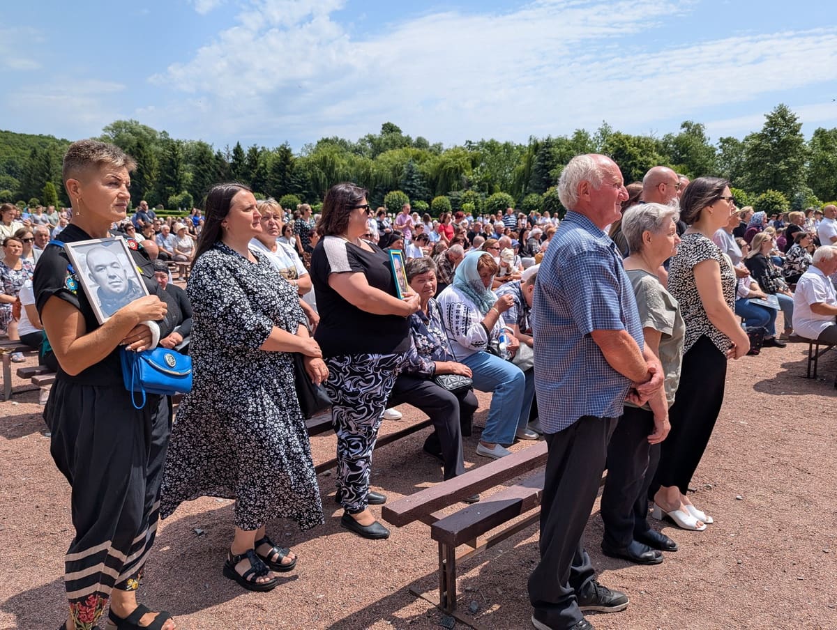 До святого місця прибуло понад півтори тисячі паломників з Тернопільщини та сусідніх областей. Люди приїхали, щоб разом помолитися за своїх рідних, які загинули на війні або вважаються зниклими безвісти.