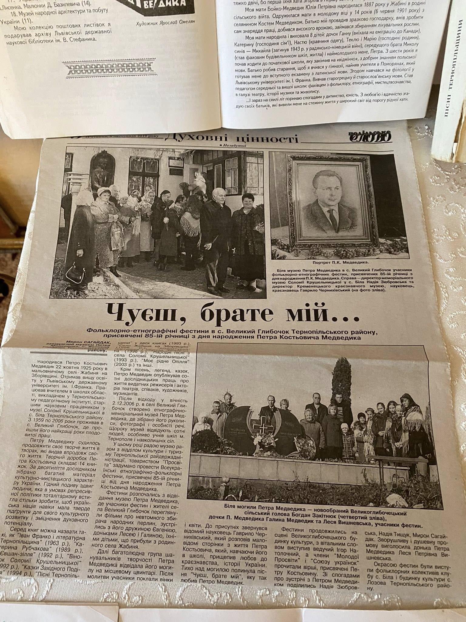 У Меморіальному музеї Соломії Крушельницької в селі Біла відкрилася виставка до 100-річчя від дня народження Петра Костьовича Медведика (22.10.1925 – 2.11.2006).