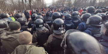 О 19:40 у Нових Санжарах жителі підпалили шини, дрова і почали кидати каміння в поліцію через приїзд евакуйованих з Китаю.