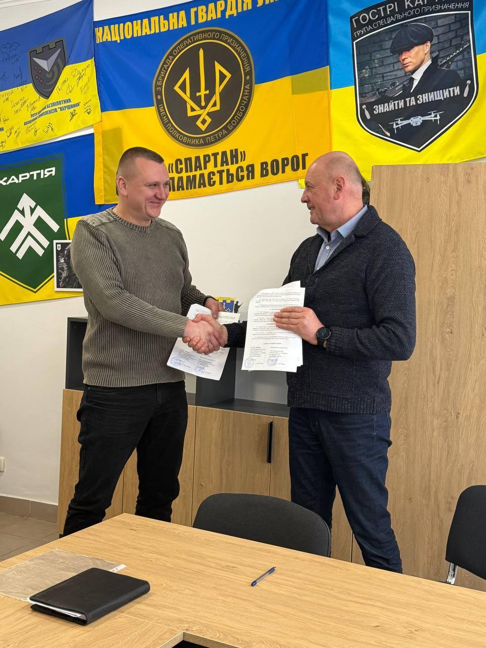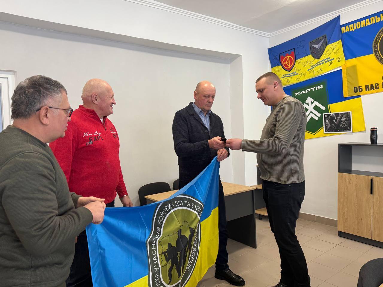 В.о. директора КУ ТОР «Ветеранський простір» Дмитро Харчук подякував керівництву громади за підтримку та підкреслив практичний вимір співпраці. Під час зустрічі відбувся обмін символічними подарунками: Євгеній Степанов передав громаді прапор профспілки, а Дмитро Харчук подарував шеврон своєї рідної 80-ї десантно-штурмової бригади, у складі якої двічі проходив бойові дії.