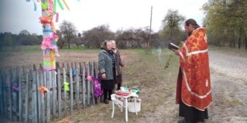 У крайній північній точці Рівненської області, а також найвіддаленішому селі від Рівного, Гориничах, лише двоє бабусь вийшли до обрічного хреста освячувати паски.