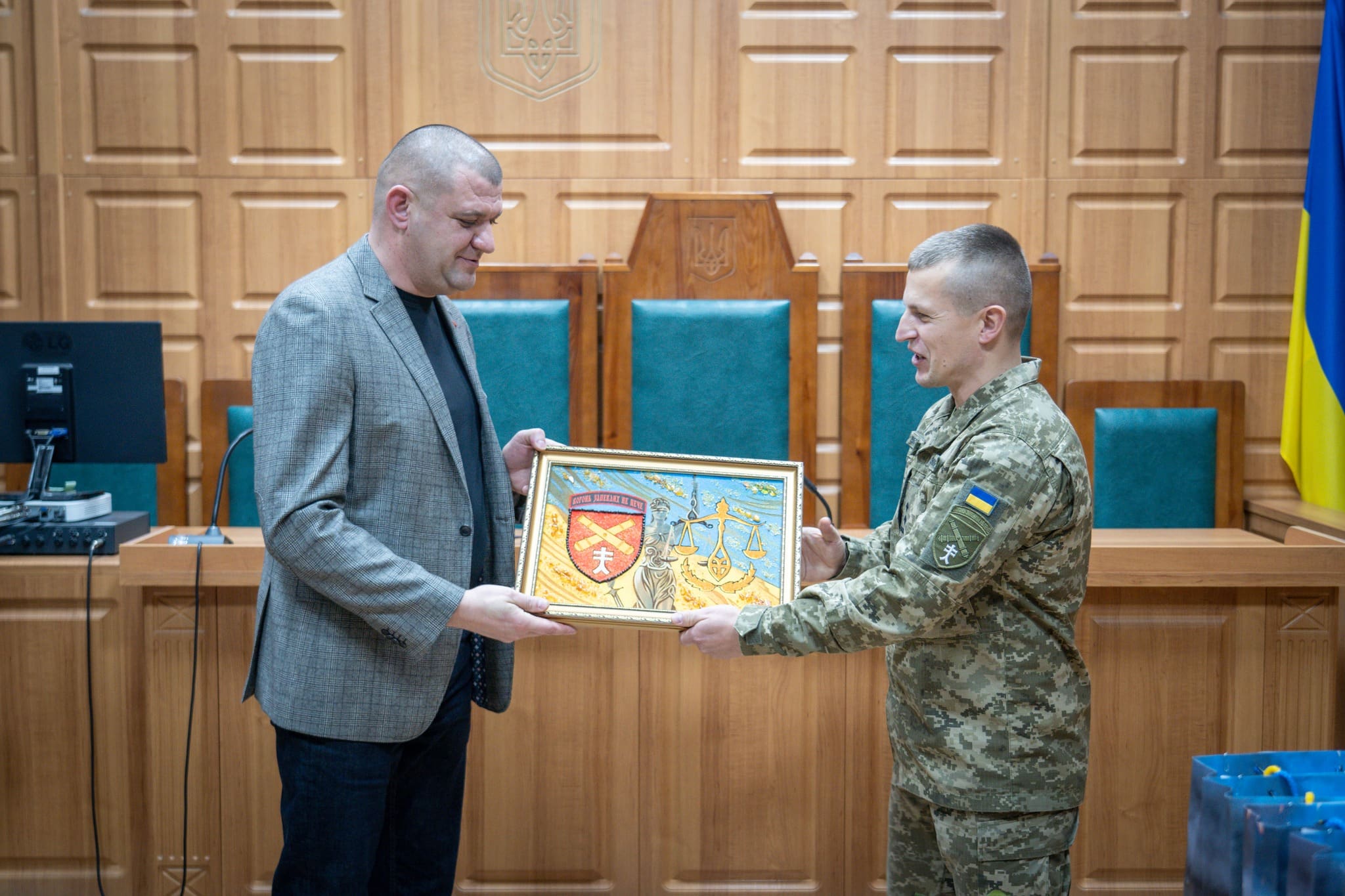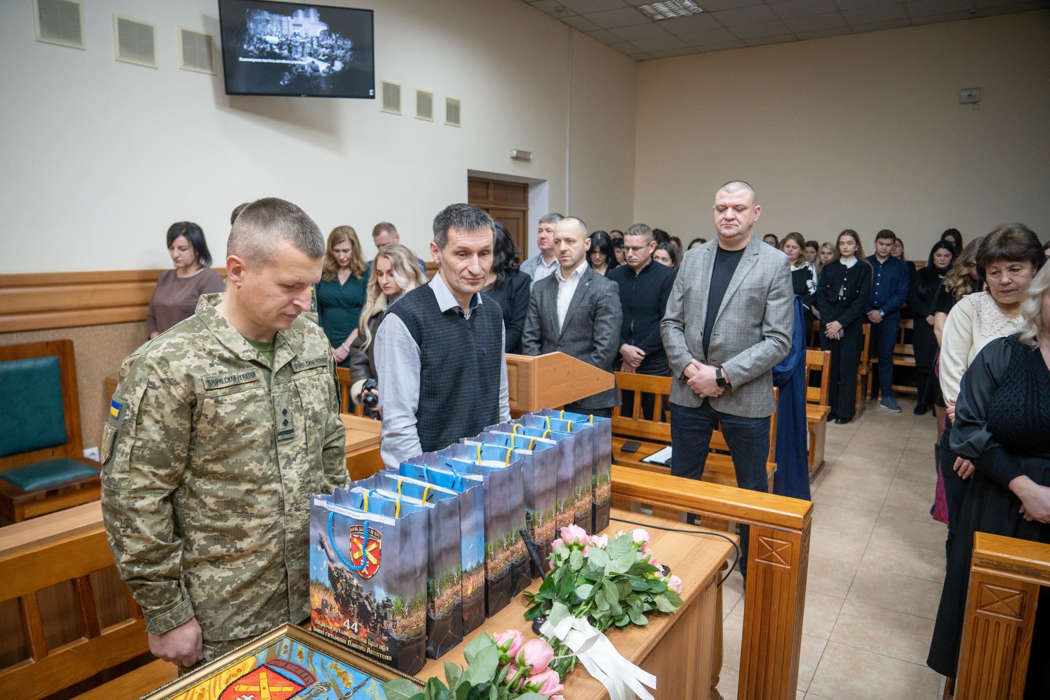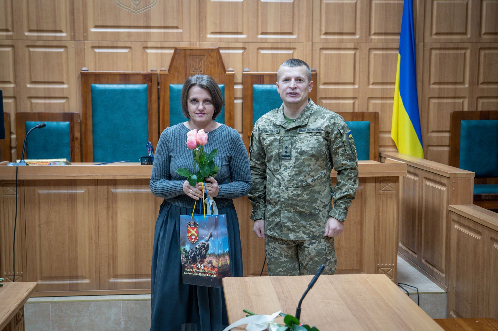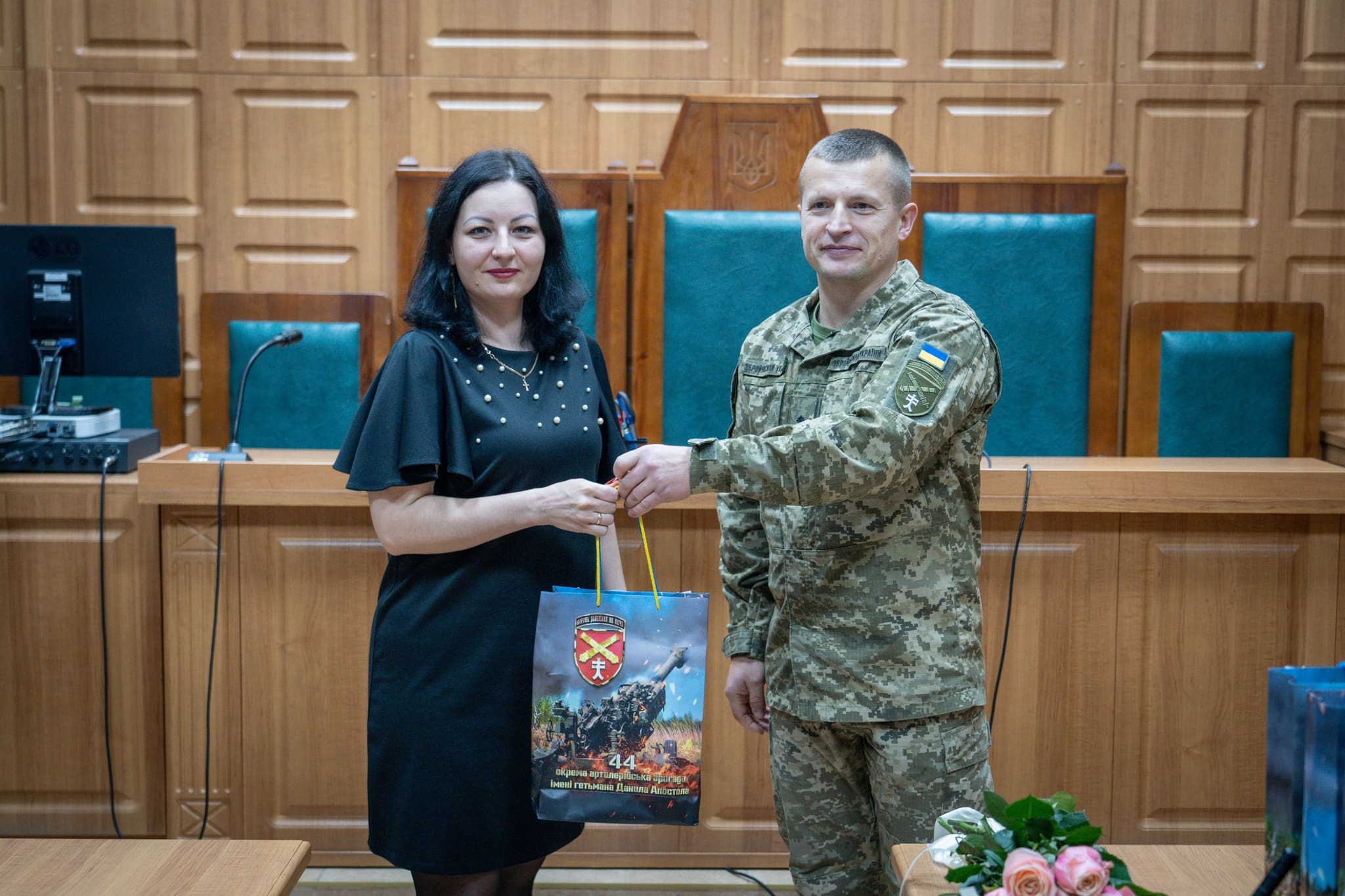 Також з вітальним словом виступив командир 44-ї окремої артилерійської бригади імені гетьмана Данила Апостола підполковник Роман Дудченко. Він відзначив важливу роль працівників судової системи у зміцненні законності та правопорядку, висловив слова підтримки й поваги, а також побажав колективу наснаги, стійкості, професійних здобутків і якнайшвидшої перемоги та миру в Україні.