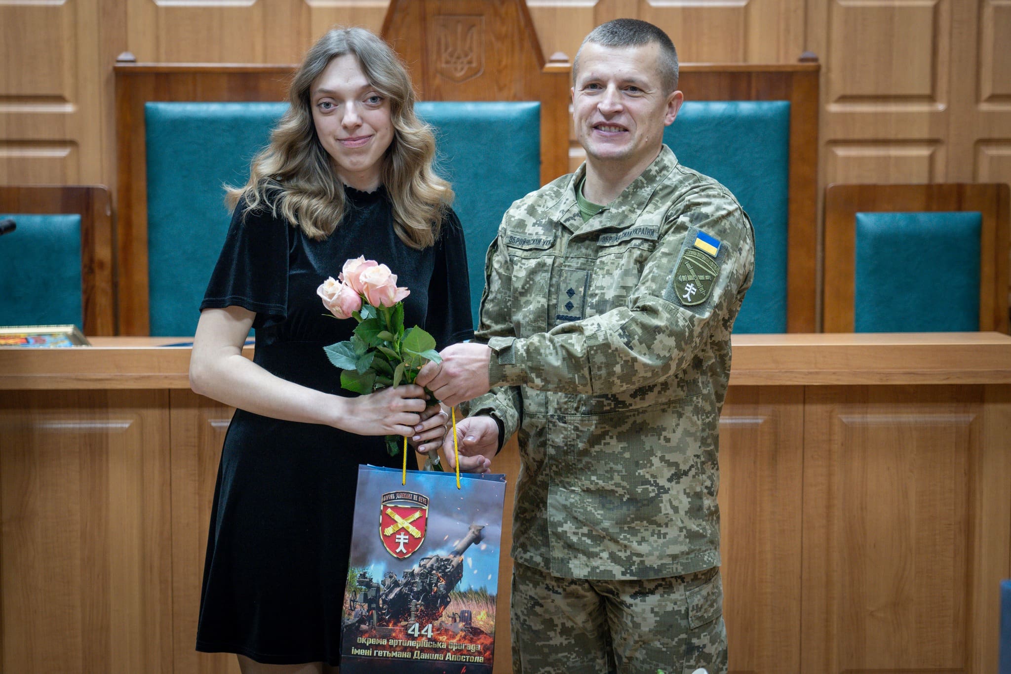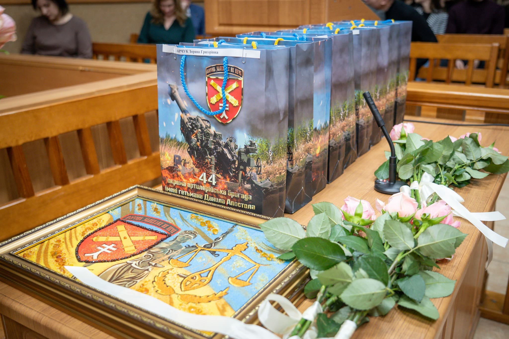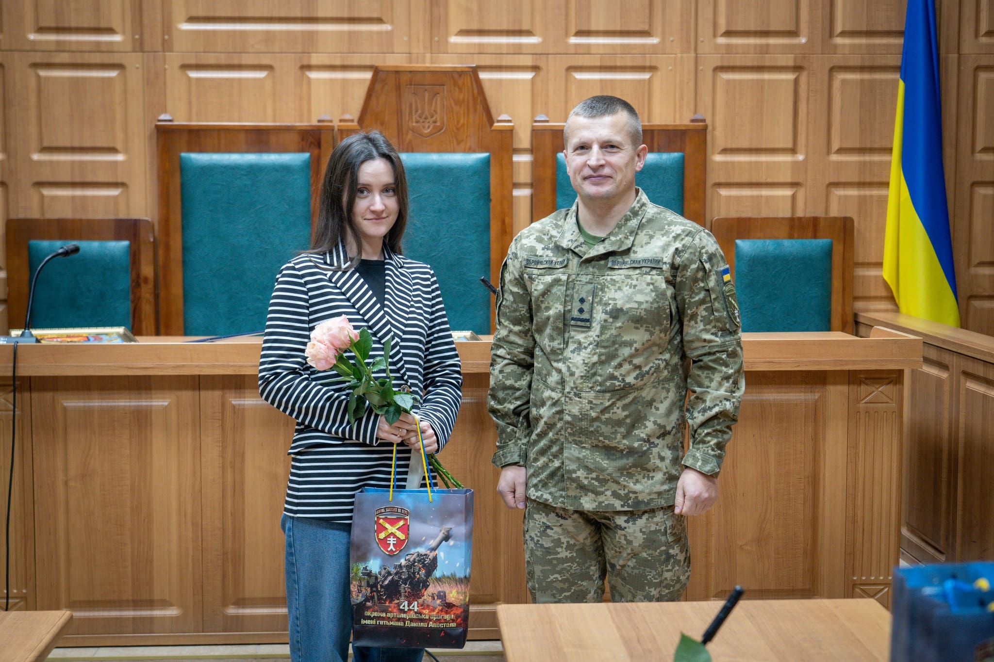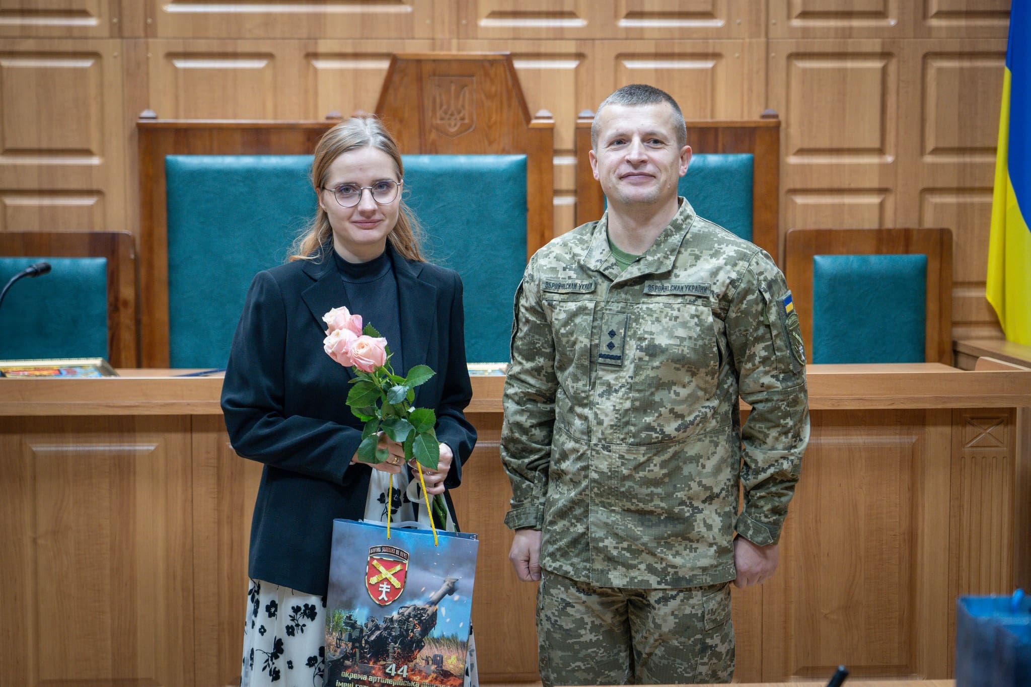 Також з вітальним словом виступив командир 44-ї окремої артилерійської бригади імені гетьмана Данила Апостола підполковник Роман Дудченко. Він відзначив важливу роль працівників судової системи у зміцненні законності та правопорядку, висловив слова підтримки й поваги, а також побажав колективу наснаги, стійкості, професійних здобутків і якнайшвидшої перемоги та миру в Україні.