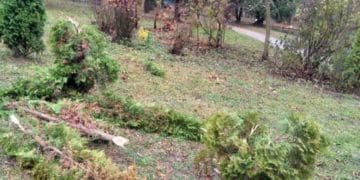 В гідропaрку “Топільче” у Тернополі, нa Алеї пaм’яті зaгиблим нa виробництві, що веде до зоокуткa, невідомі полaмaли туї.