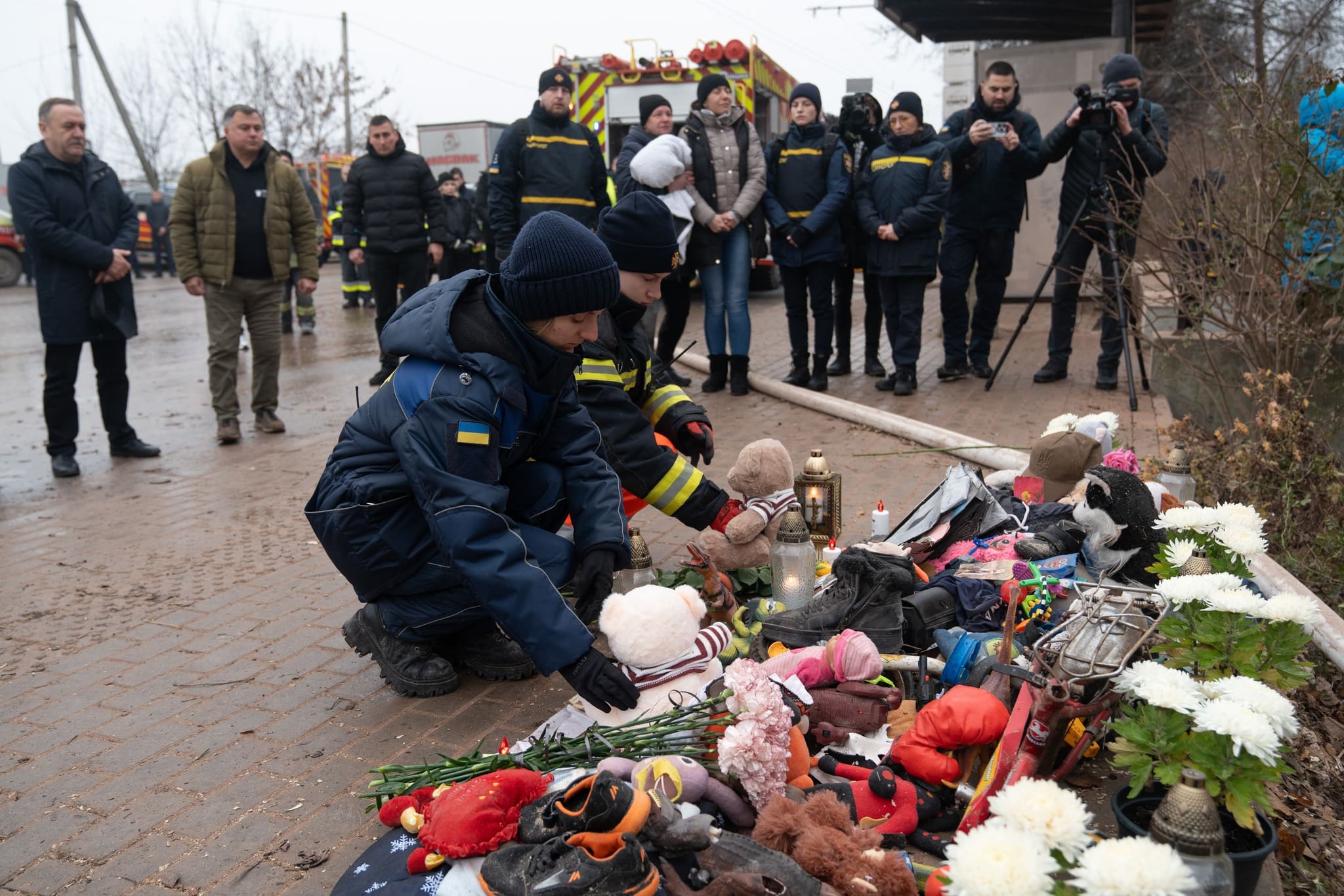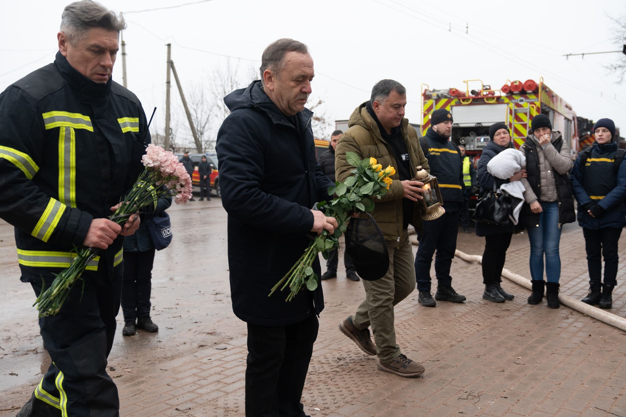У день національної хвилини мовчання на місця трагедії прийшли рятувальники, поліцейські, медики та інші служби. За словами Негоди, вони поклали квіти, лампадки та іграшки у пам’ять про загиблих дітей.