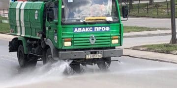 Перед обробкою доріг спецтехніка скроплює водою покриття, очищаючи його від бруду. Особлива увага комунальних служб зосереджена на перехрестях, де є найбільше автівок і людей. Перед дезінфекцією доріг спецтехніка скроплює покриття водою, очищаючи його від бруду.