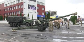 У Тернополі біля торгового центру сьогодні було багато військової техніки і зброї (відео)