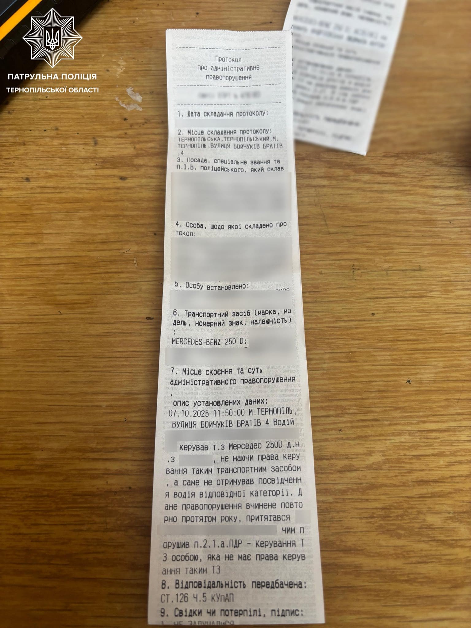 За кермом перебував 16-річний хлопець, який, як з’ясувалося, уже раніше притягувався до адміністративної відповідальності за керування без права керування. Цього разу підліток знову не мав права керувати автомобілем і не пред’явив документів на транспортний засіб.