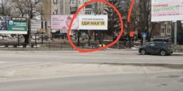 Славнозвісна фраза про “рускій корабль” з’явилася на рекламних щитах міста.