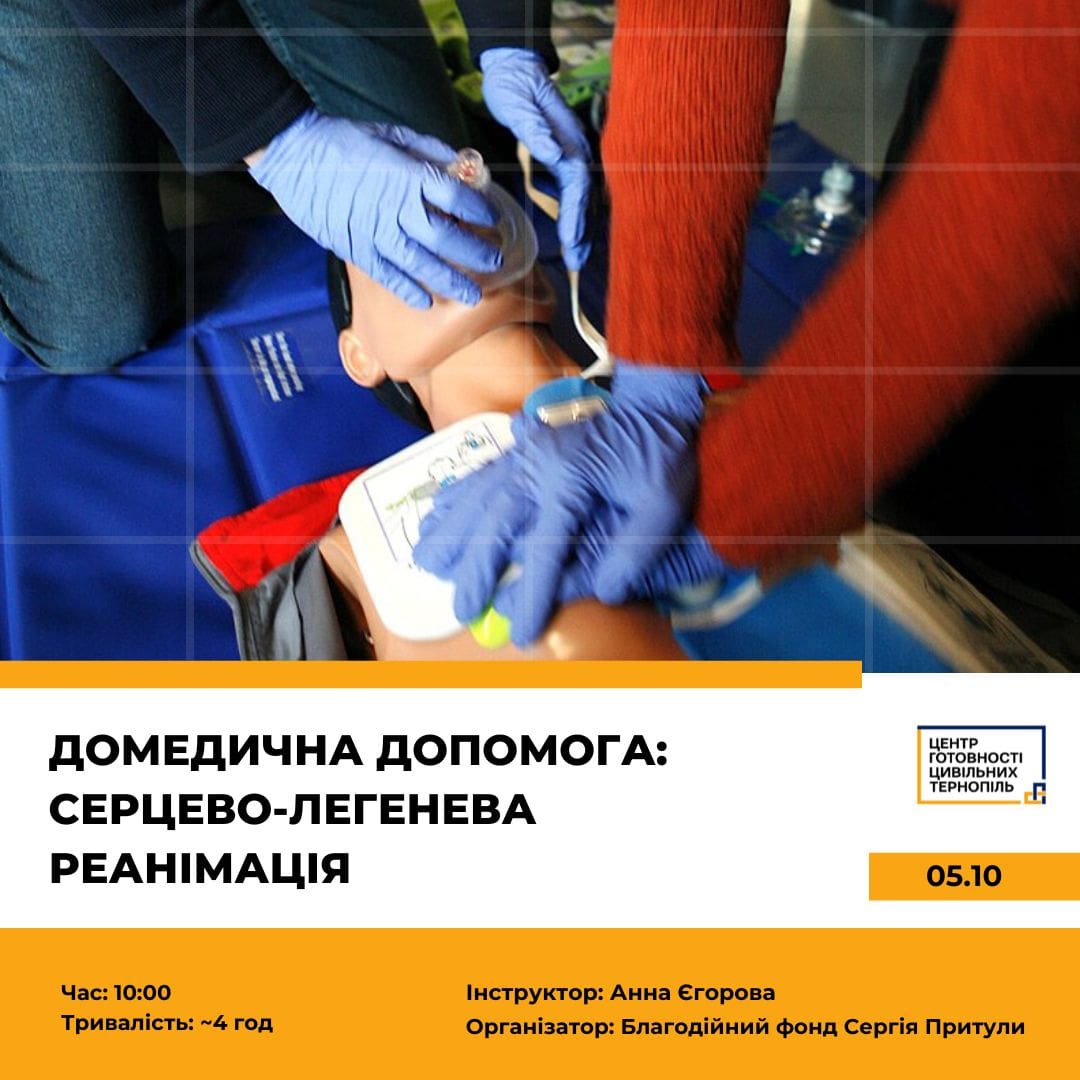 5 жовтня о 10:00 у Тернополі відбудеться тренінг із домедичної допомоги на тему «Серцево-легенева реанімація» (СЛР). Захід, організований Благодійним фондом Сергія Притули за підтримки Освітньо-аналітичного центру розвитку громад і UA News Media Group, триватиме близько 4 годин. Інструкторка Анна Єгорова навчить учасників рятувати життя за сучасними протоколами.