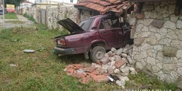 У Тернополі ВАЗ протаранив кам’яну огорожу