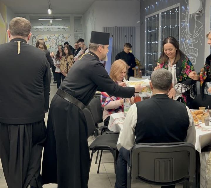 Після Літургії відбулася спільна різдвяна трапеза. Вона розпочалася із запалення вифлеємського вогню як символу миру та Божої присутності, а також із ділення різдвяної просфори — як знаку єдності та благословення.