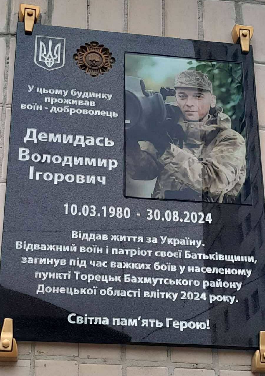 «Пам’ятний знак встановили на фасаді будинку, де мешкав захисник. Відтепер це місце берегтиме пам’ять про людину, яка залишила рідний дім, щоб стати на захист України – і віддала за неї найдорожче».