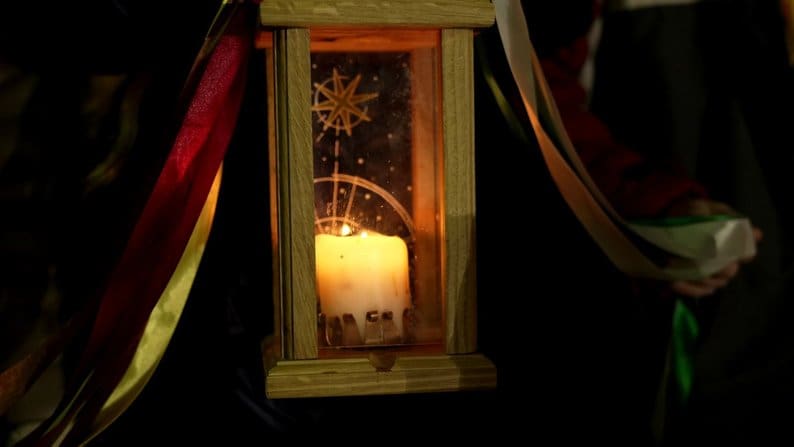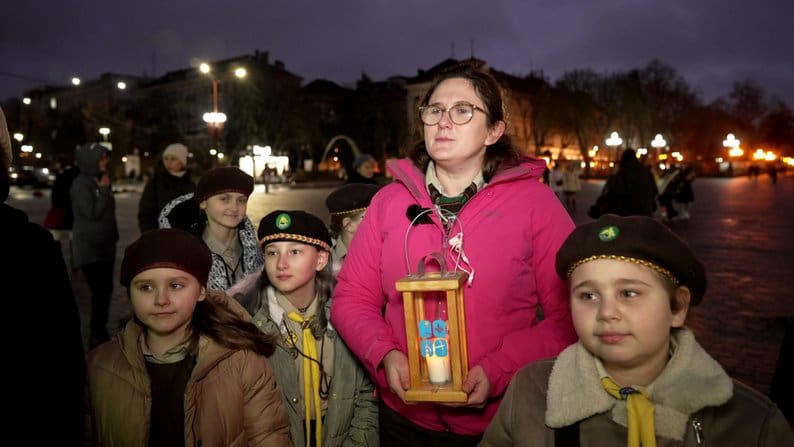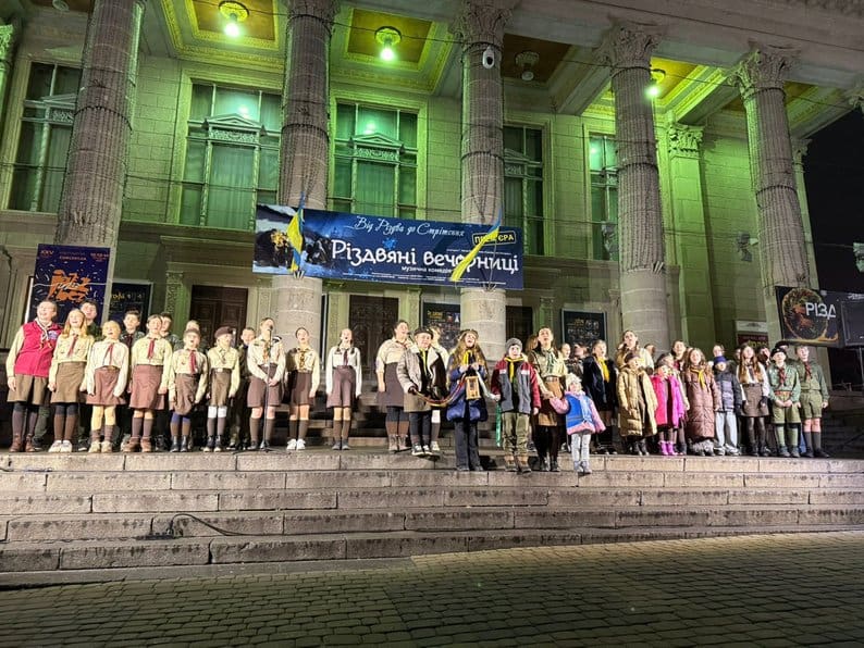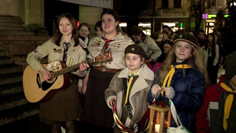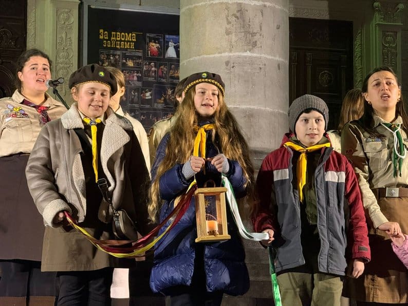 Пластуни принесли Вифлеємський вогонь миру, щоб покласти його у шопку.