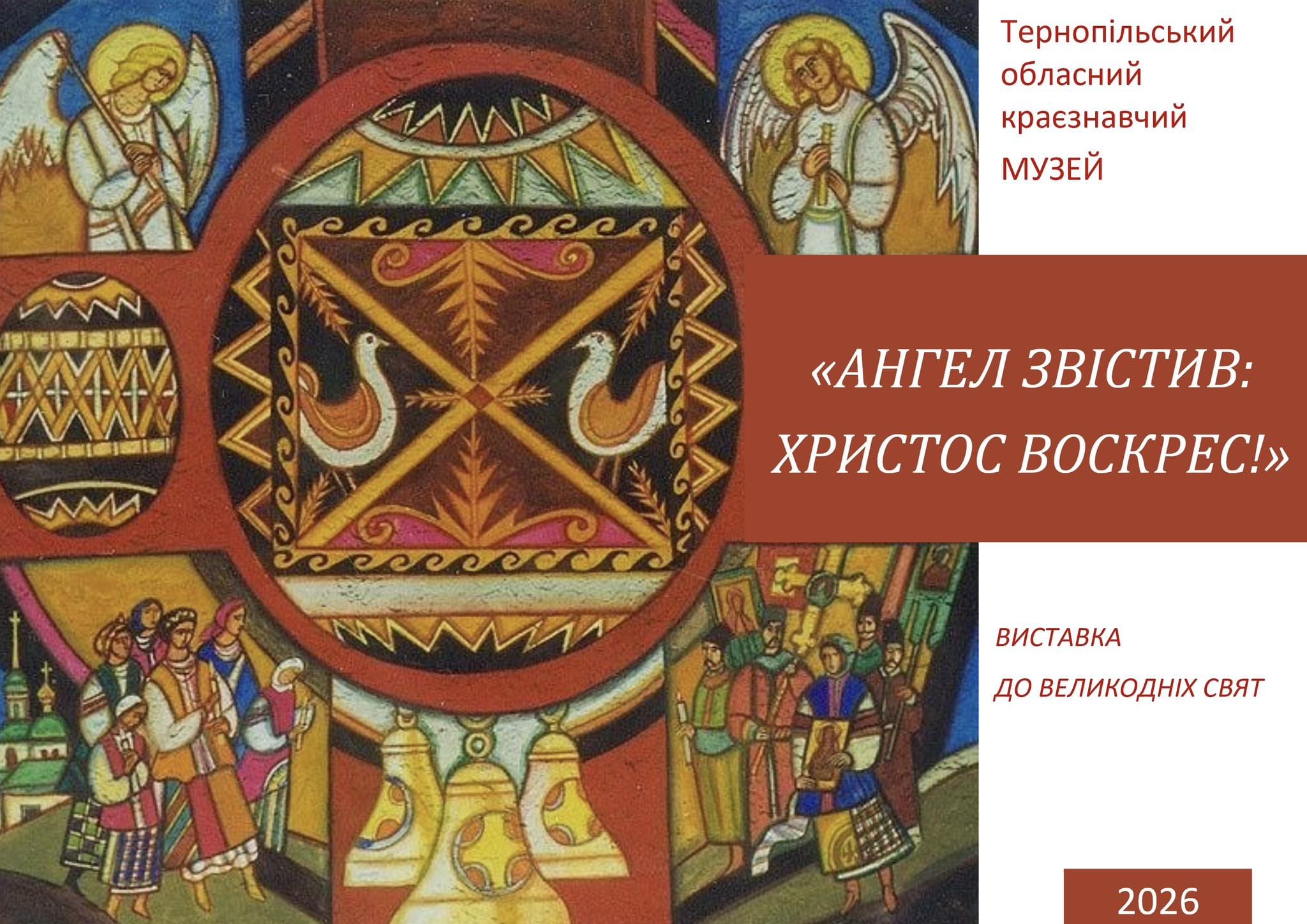 У Тернополі до Великодня підготували тематичну виставку, присвячену одному з найважливіших християнських свят. Експозицію під назвою «Ангел звістив: Христос воскрес!» презентували в Тернопільський обласний краєзнавчий музей.