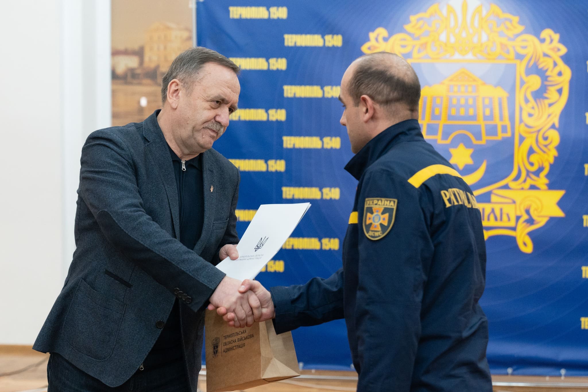 «Професіонали, які досконало виконують свій обов’язок в найскладніших умовах, рятують чужі життя, ризикуючи своїм – варті нашої вдячності та шани. Сьогодні нагородив людей, які рятували життя жителів Тернополя під час ракетного удару 19 листопада».