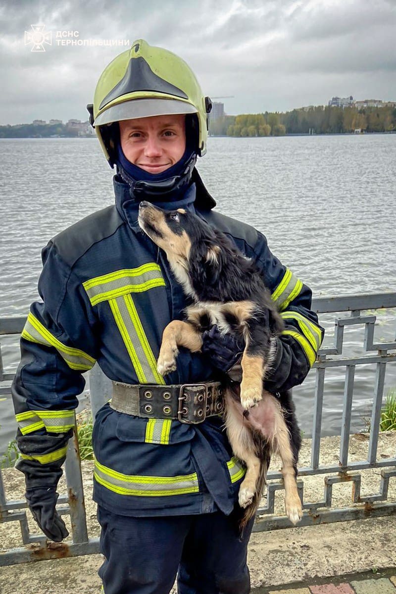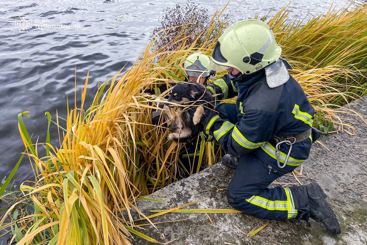 Як повідомили в Головному управлінні ДСНС України у Тернопільській області, посеред Тернопільського ставу, біля дамби, на невеликому острівці очерету стояв собака. Під лапами – волога земля, а навколо – вода та бетонна стіна. Для виснаженої й наляканої тварини навіть півтора метра вгору до берега стали неподоланною перешкодою.