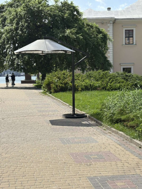 У Тернополі управління житлового-комунального господарства, благоустрою та екології ТМР проводить роботи з влаштування освіжаючих парасольок. Такі конструкції створюють дрібнодисперсний водяний туман, який допомагає знизити температуру повітря поруч та покращити комфорт містян у спеку.