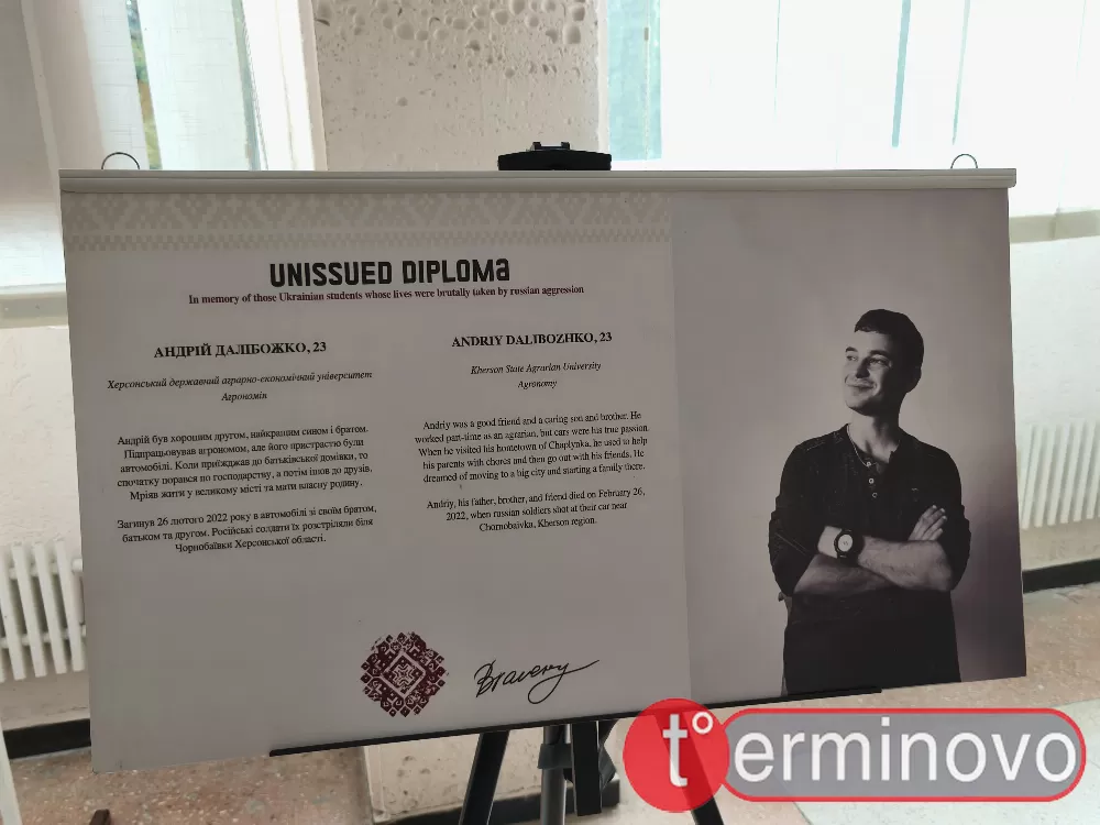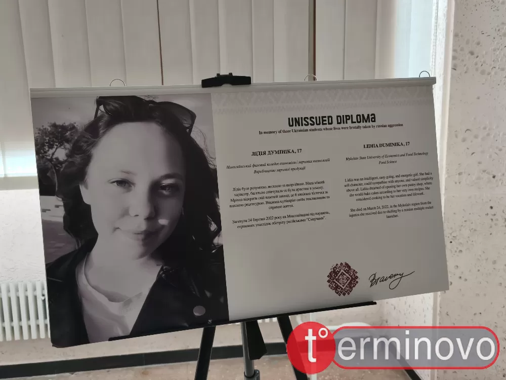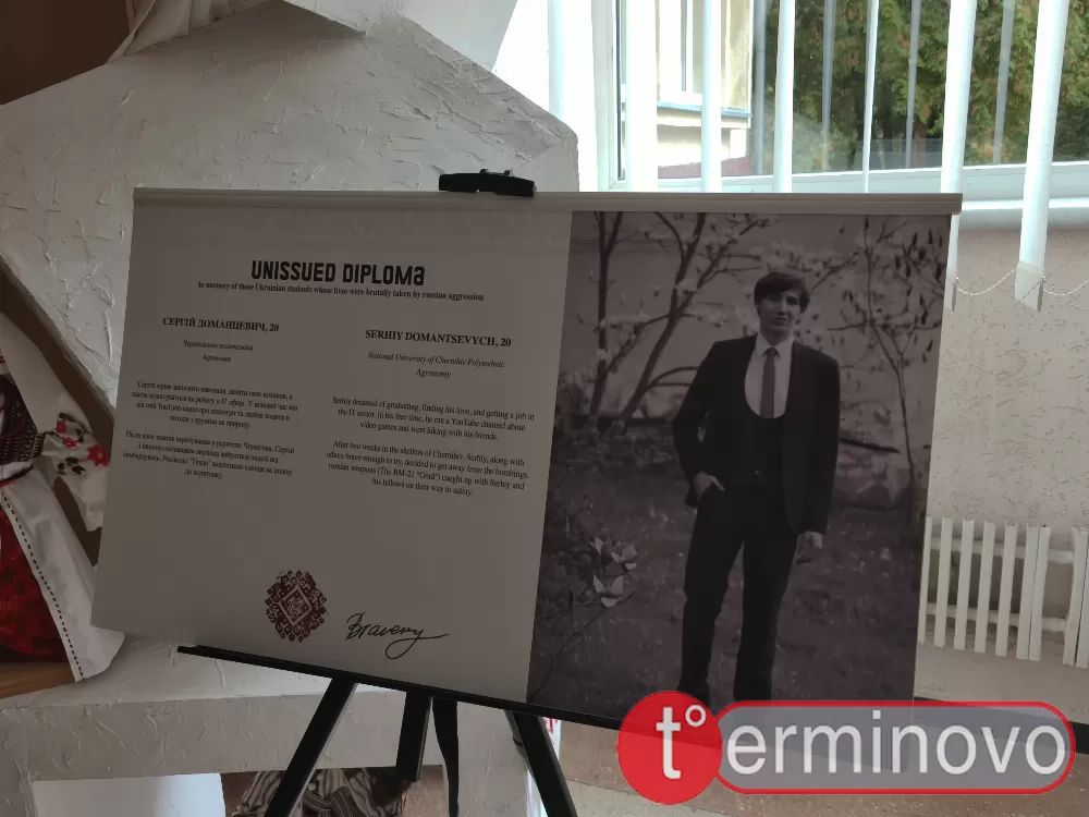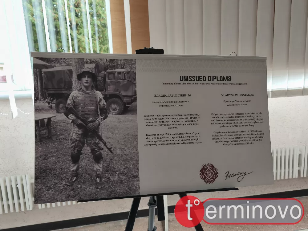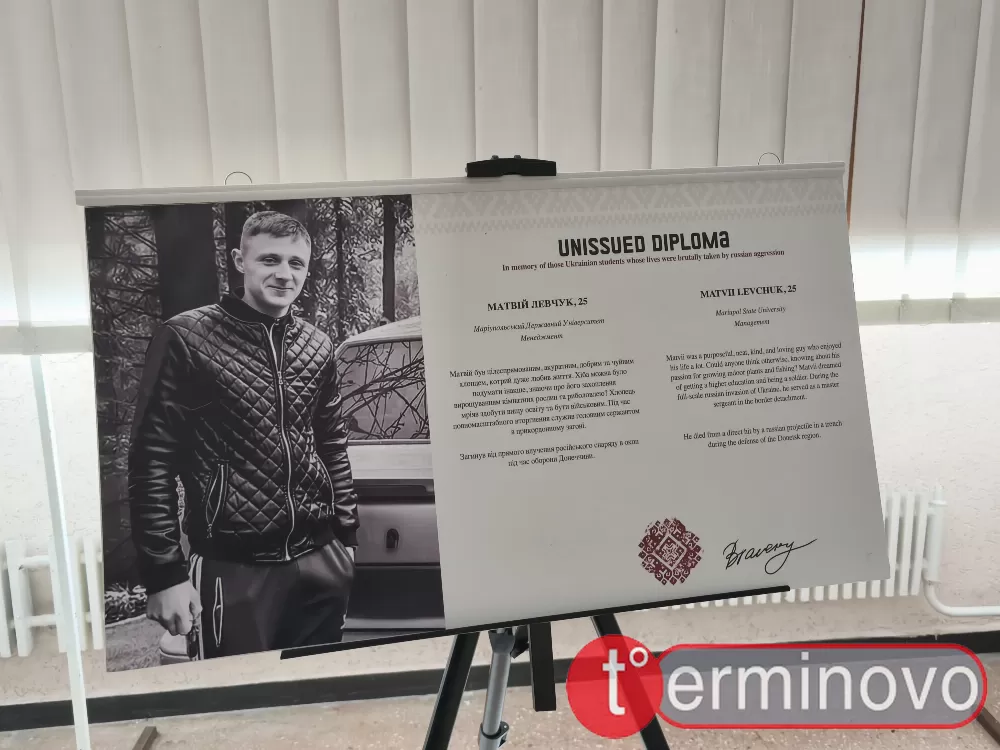 У Тернопільському національному педагогічному університеті імені Володимира Гнатюка відкрили виставку «Unissued diplomas» («Невидані дипломи»). Проєкт присвячений українським студентам, життя яких обірвала війна.
