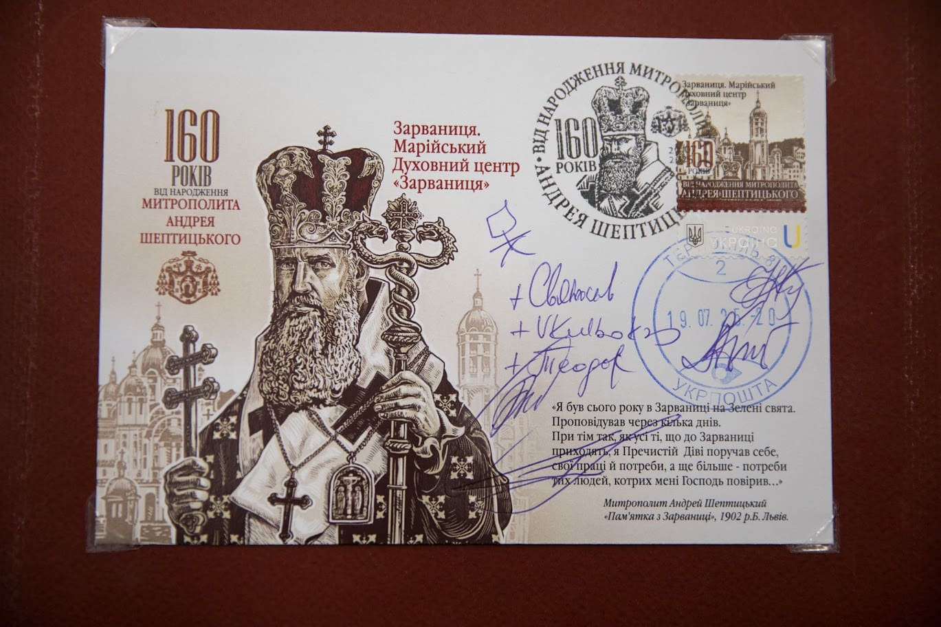 У рамках прощі в Марійському духовному центрі «Зарваниця» відбулася ще одна знакова подія – погашення спеціальної поштової марки з нагоди 160-річчя з дня народження митрополита Андрея Шептицького.