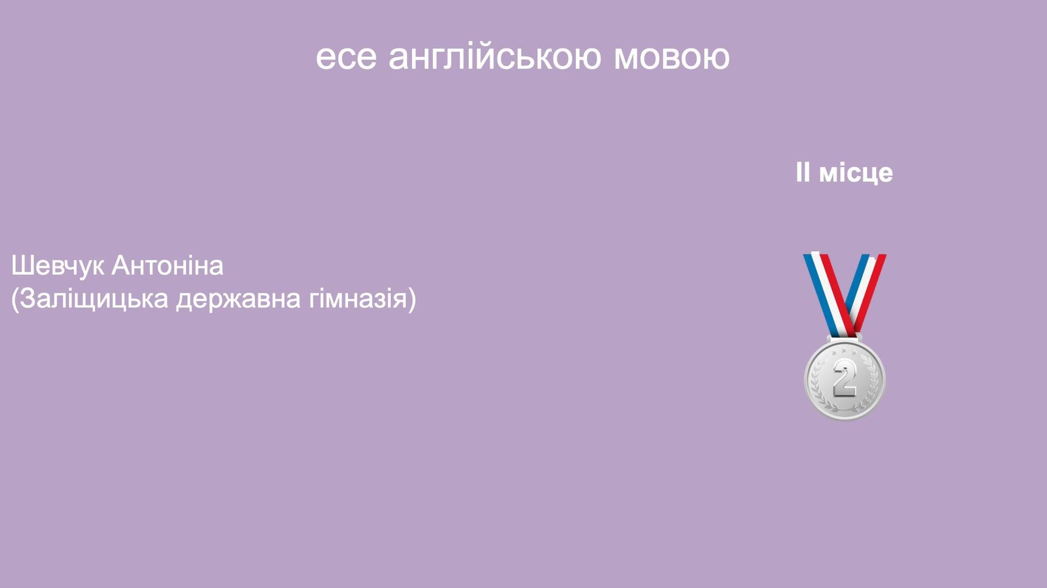 За підсумками фінального етапу Антоніна Шевчук отримала Диплом ІІ ступеня в номінації есе англійською мовою. Її науковий керівник — Дяків Василь Григорович, учитель Заліщицької державної гімназії, викладач обласного відділення МАН України та заслужений учитель України.