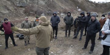 Командир роти територіальної оборони Євген Шамрай щотижня проводить навчання для людей, які не вміють користуватися зброєю.