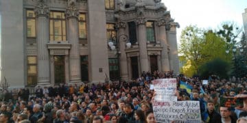 Люди мирно пройшли під Адміністрацію, а перед входом продовжили вигукувати “Дякую, Петро!” і співати українських пісень.