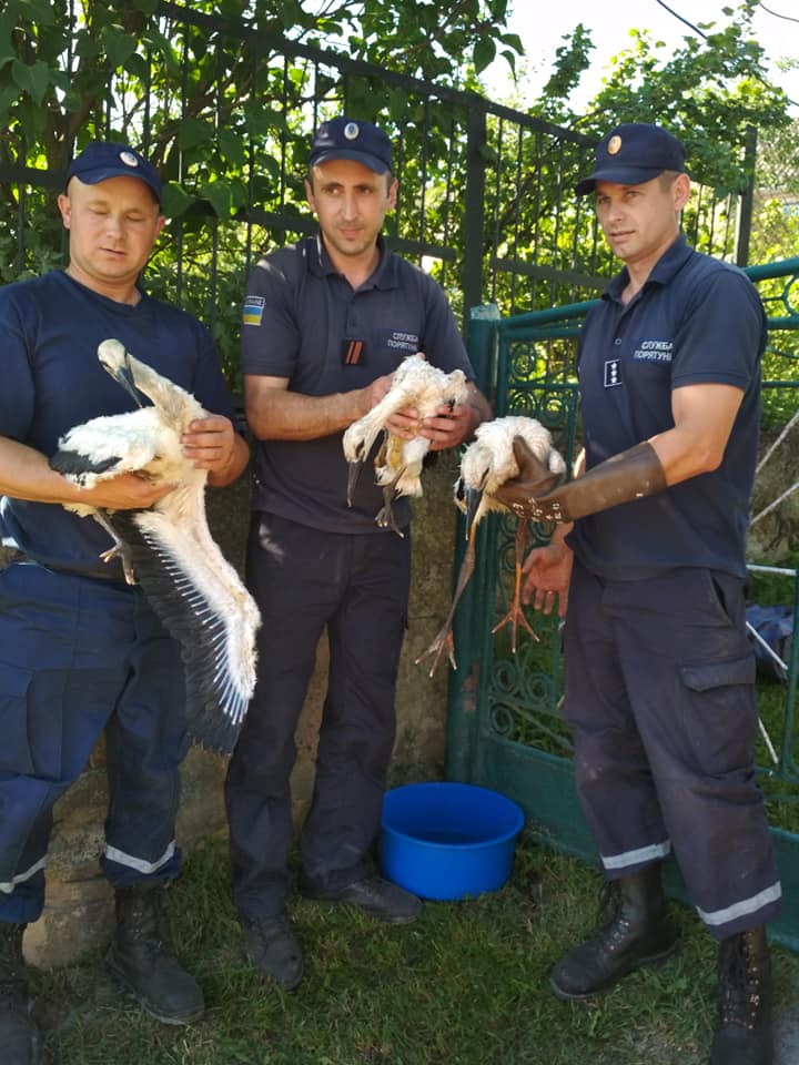 Трьох молодих лелек врятували жителі Бучаччини спільно з ДСНС-никами. Про це повідомила жителька краю Марія Іванців у соцмережі.
