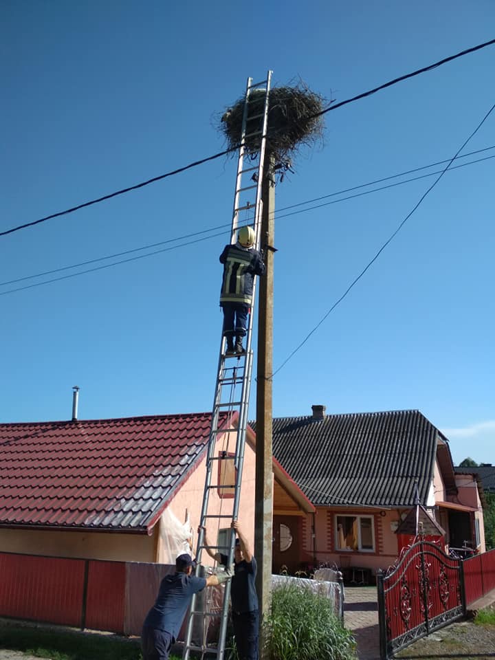 Жінка опублікувала фото, як рятувальники допомогли лелеченятам у селі Жизномир.
