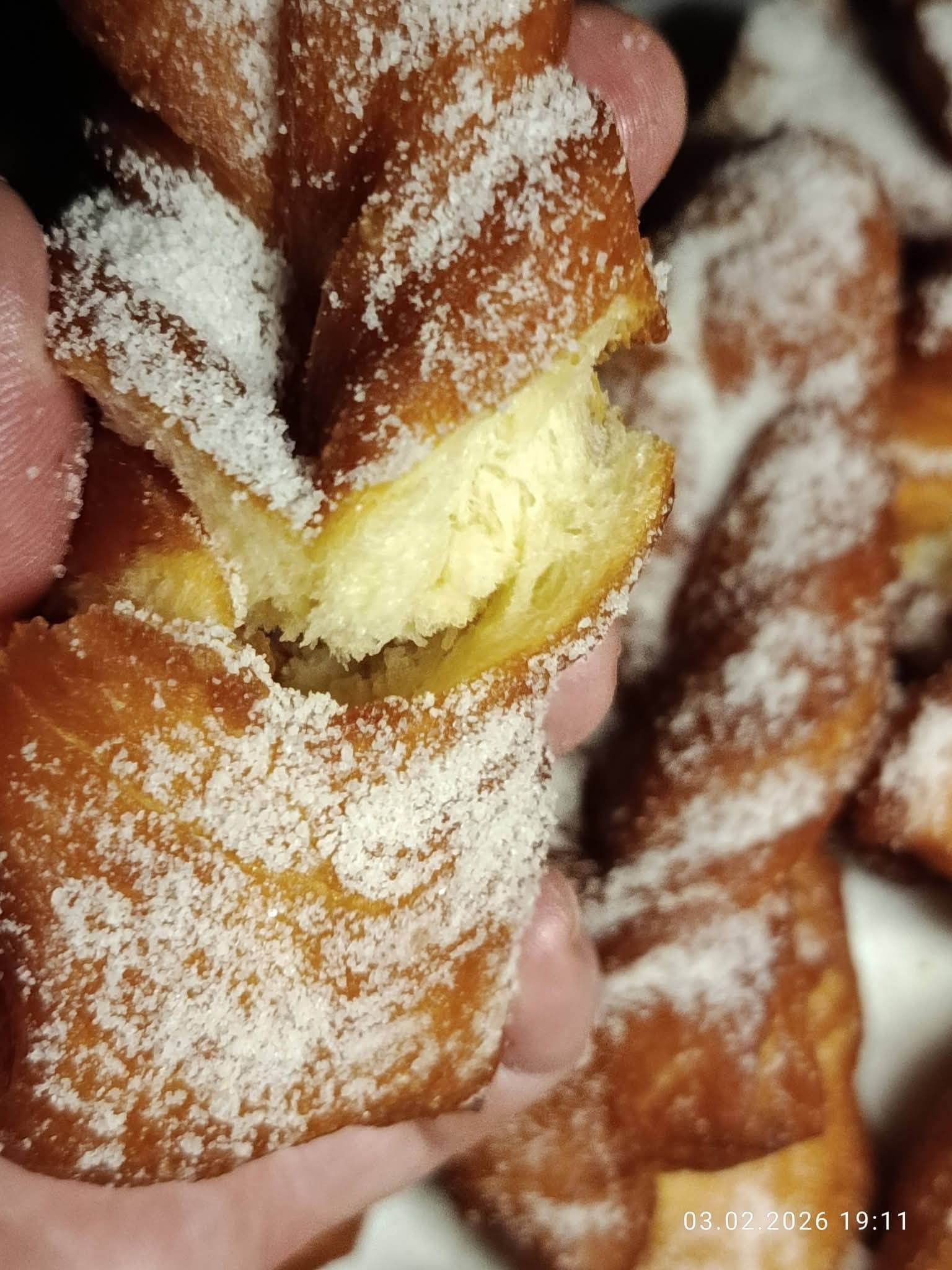 Не змащуйте поверхню і не притрушуйте борошном при розкатуванні – тісто повинно бути чистим для кращого результату. Дайте сформованим вергунам обов’язково підійти перед смаженням – це ключовий момент.