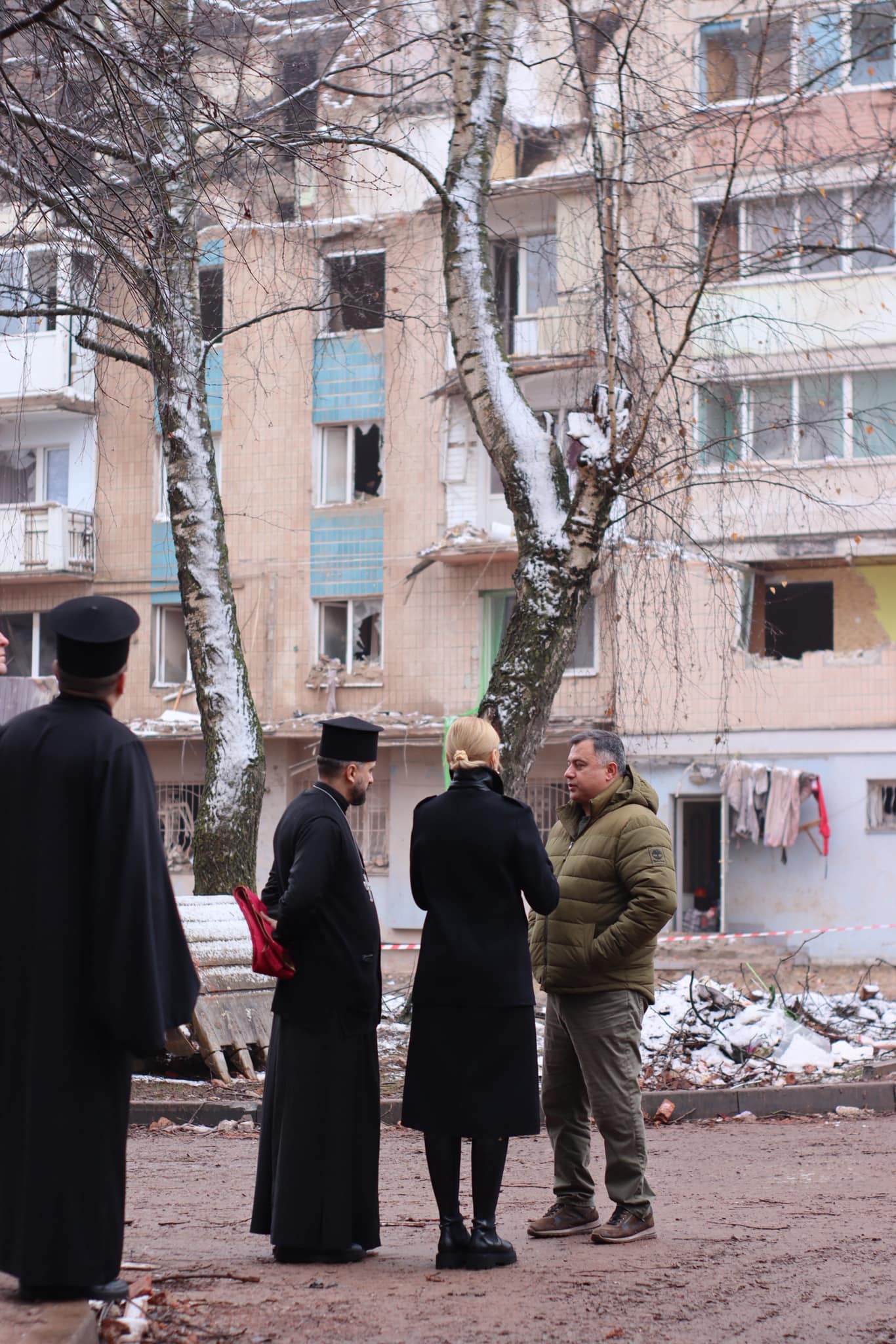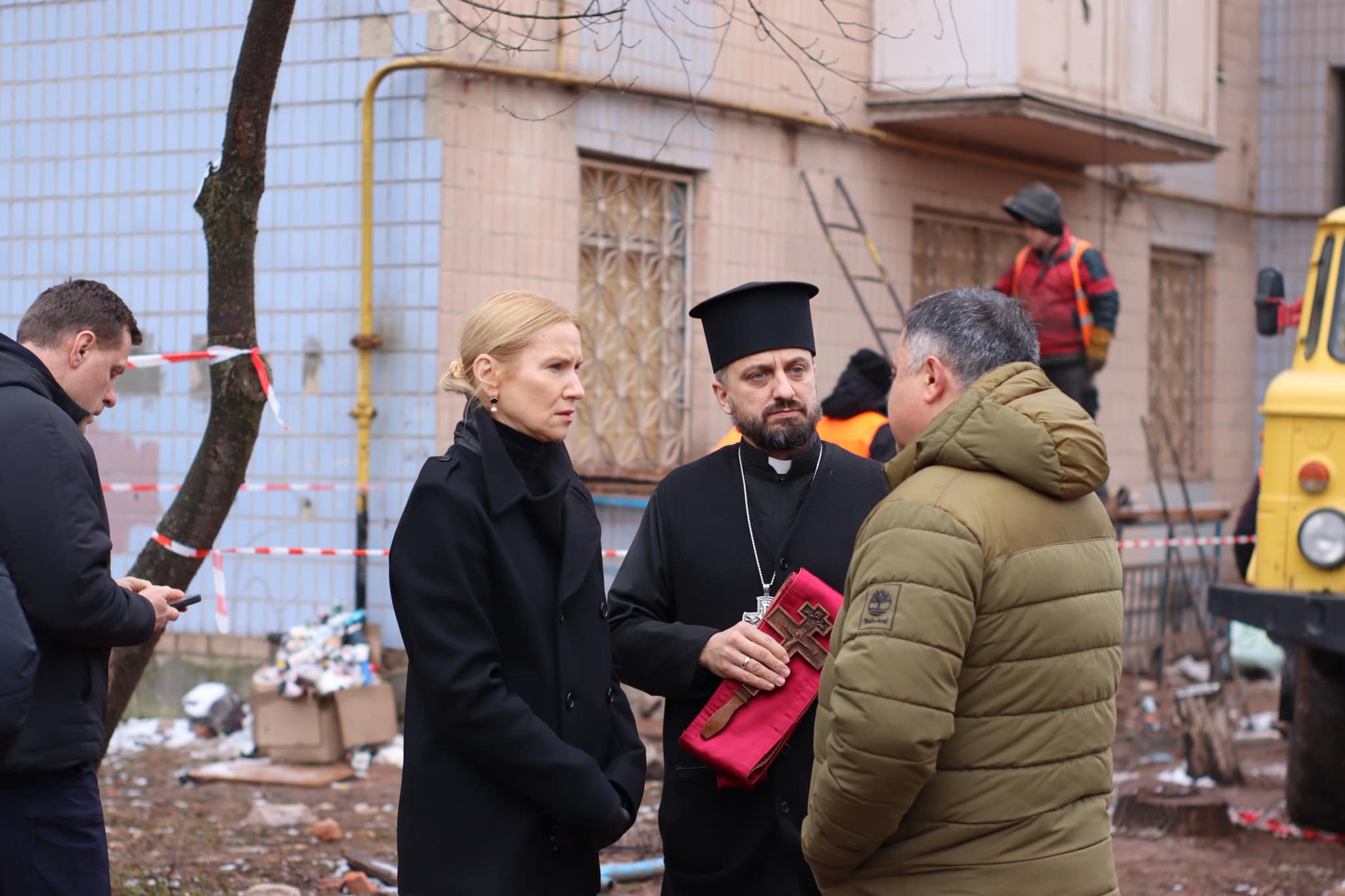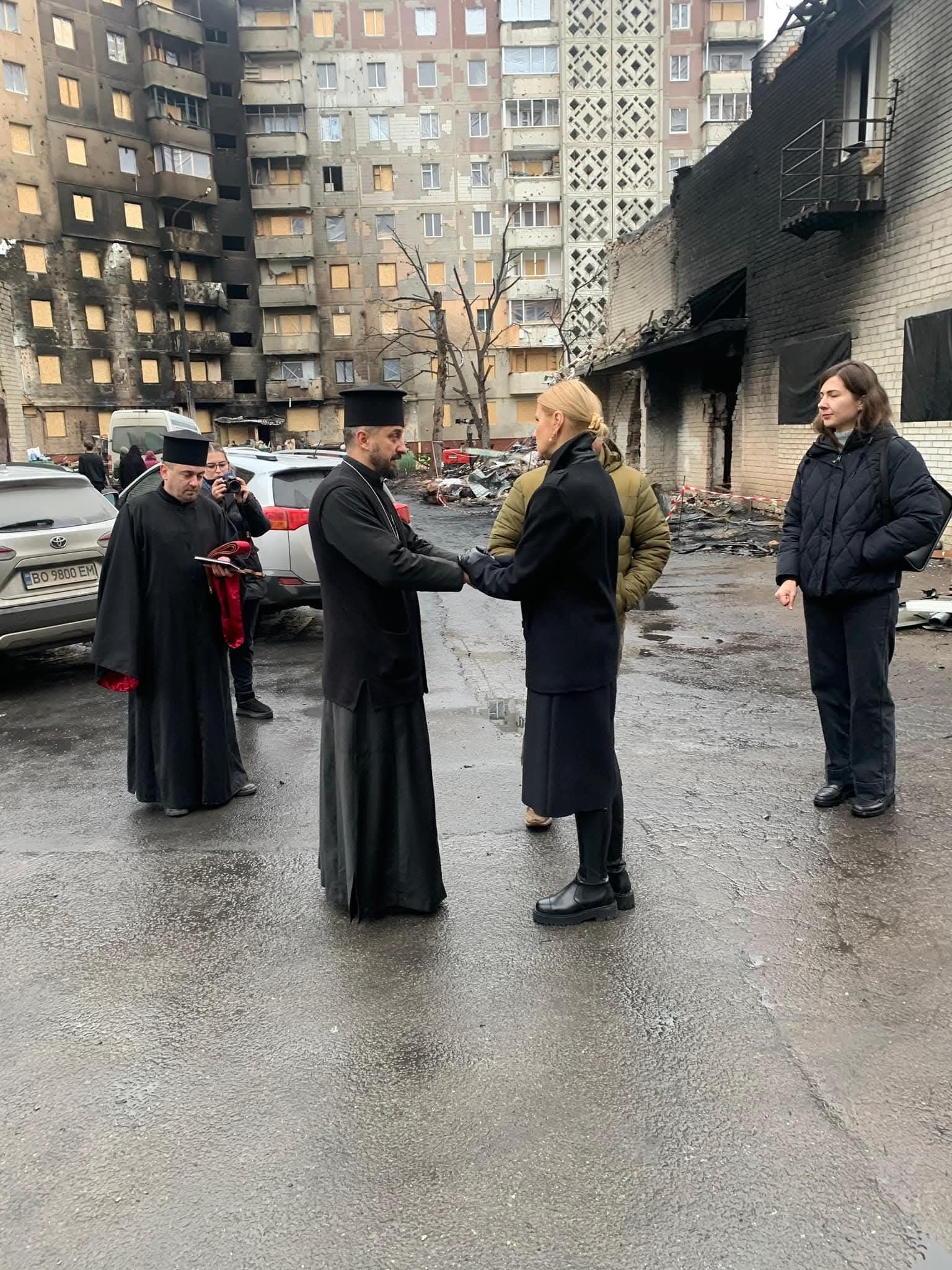 За її словами, вона спілкувалася з Тарасом Пастухом, Михайлом Маслієм, священниками та місцевими мешканцями, які п’яту добу чекають біля зруйнованих будинків.