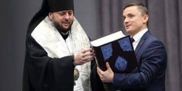 Архієпископ Тернопільський і Бучацький Тихон вручив голові Тернопільської обласної ради Михайлу Головку копію Пересопницького Євангелія, окропив присутніх свяченою водою та побажав обранцям працювати у мирі на благо людей.