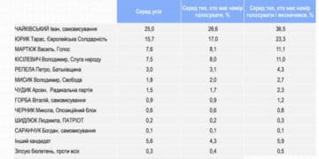Так, серед тих, хто визначився з вибором та обов’язково піде голосувати, лідером по одномандатному виборчому окрузі №165 (Тернопільський, Козівський, Бережанський, Зборівський та Підгаєцький район, мікрорайони Кутківці та Пронятин у Тернополі) є Іван Чайківський.