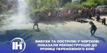 Вибухи та постріли: у Чорткові показали реконструкцію до річниці переможного бою (Відео)