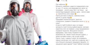 Ми, стоматологи Тернополя, хочемо, щоб наші пацієнти знали, що ми не байдужі і хочемо працювати, якісно, ми готові забезпечити гідні умови на своїх робочих місцях, щоб уникнути поширення СOVID-19. Проте нам на це заборонено! Вимагаємо розуміння і підтримки!” – пише Dana Plishka.