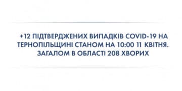 Згідно з даними обласного лабораторного центру станом на 10:00 11 квітня на Тернопільщині 208 випадків COVID-19, 5 – летальних.