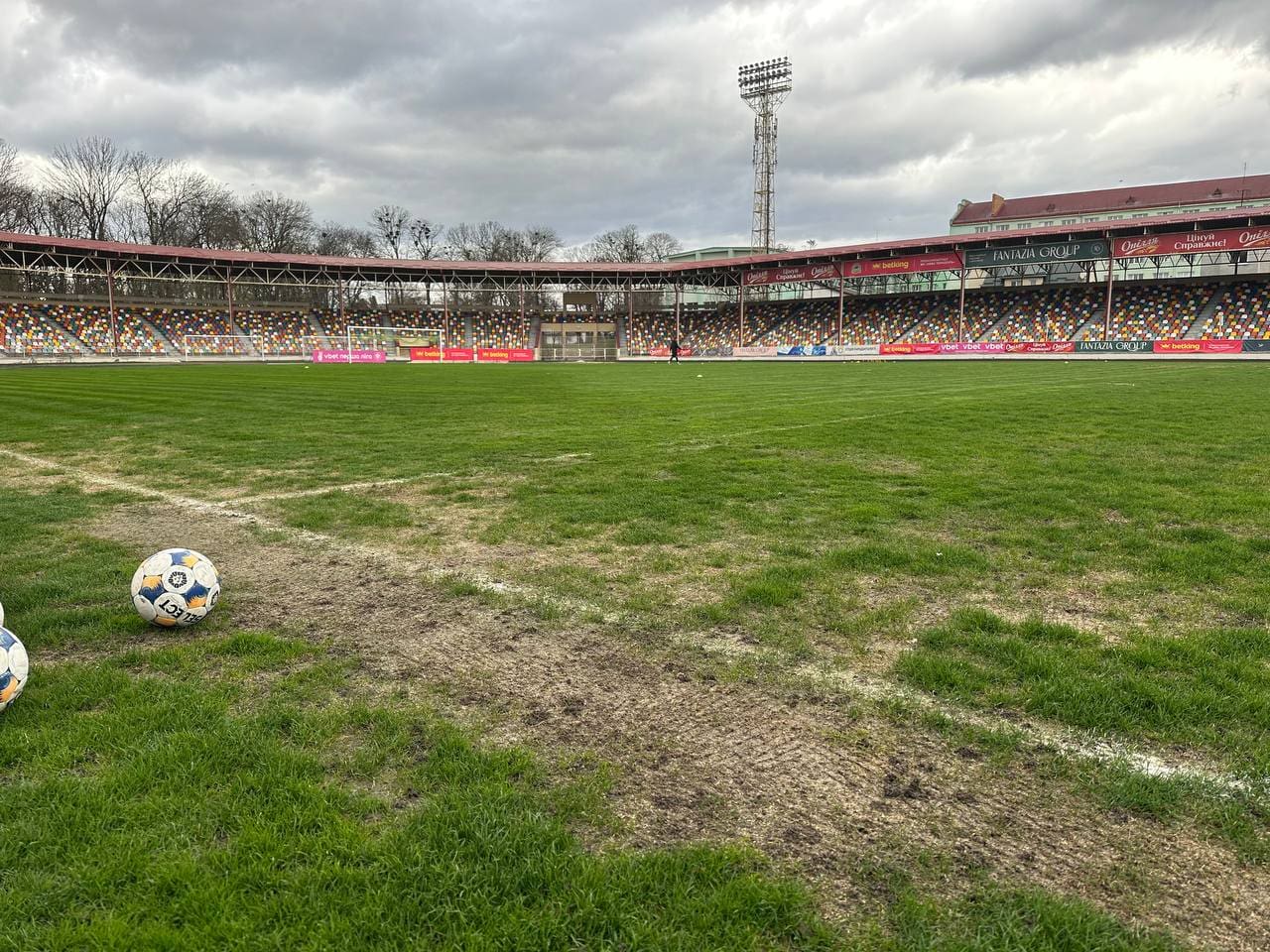 Комісія зафіксувала: газон стадіону у незадовільному стані. Витоптані та оголені ділянки, бур’яни, ущільнений ґрунт, відсутність будь-якого догляду. Біля воріт – болото. На момент передачі в оренду газон був у задовільному стані – це зафіксовано документально.