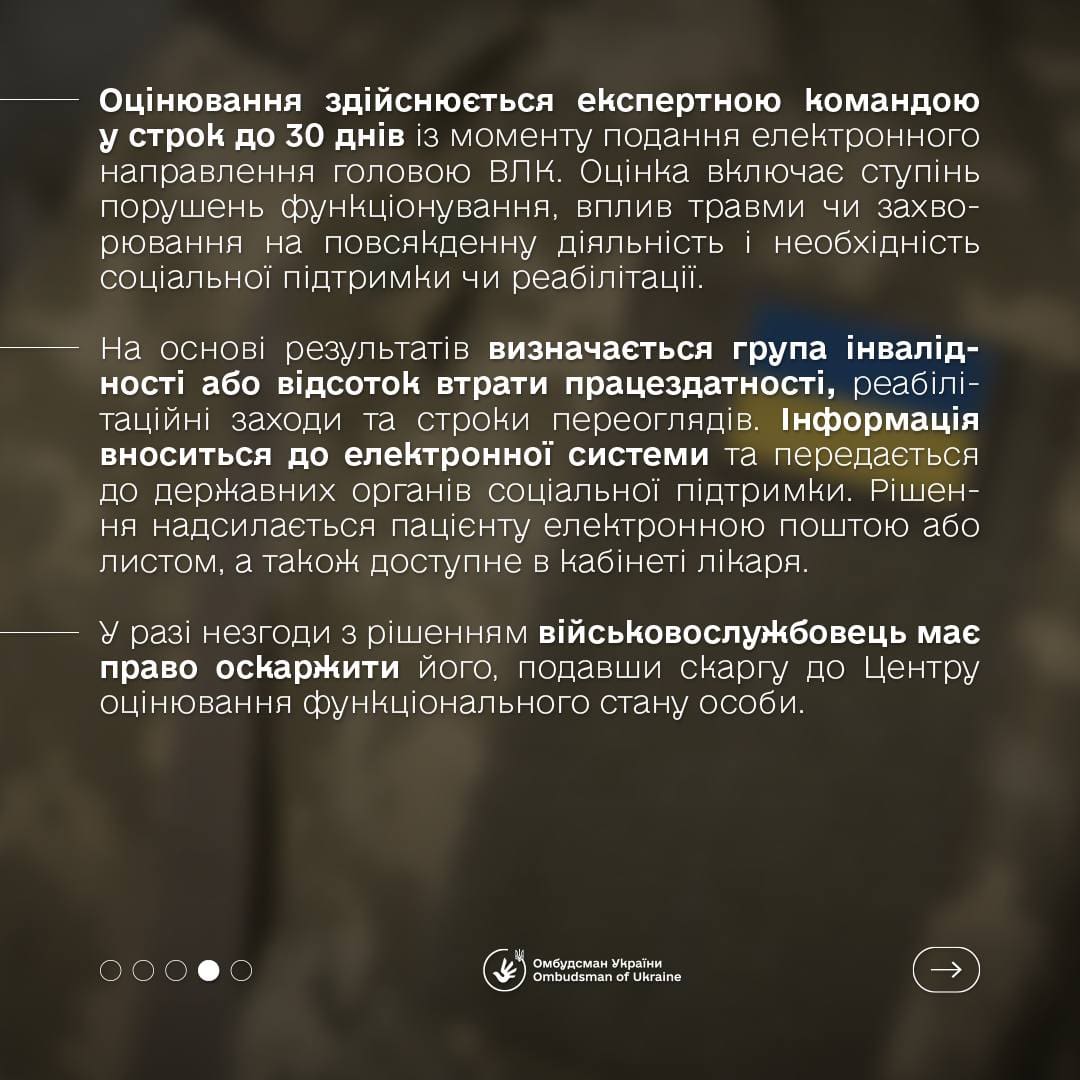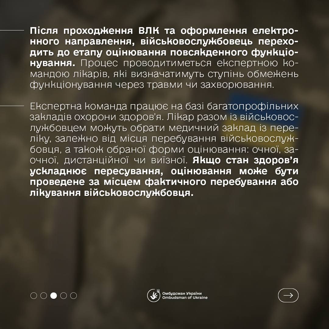 Для військовослужбовців процедура залишається безкоштовною, проте тепер вона вимагає іншого підходу до збору документів. Замість звичайних медичних висновків необхідно буде подавати інформацію про функціональні обмеження, що впливають на здатність до праці чи інші аспекти життя.