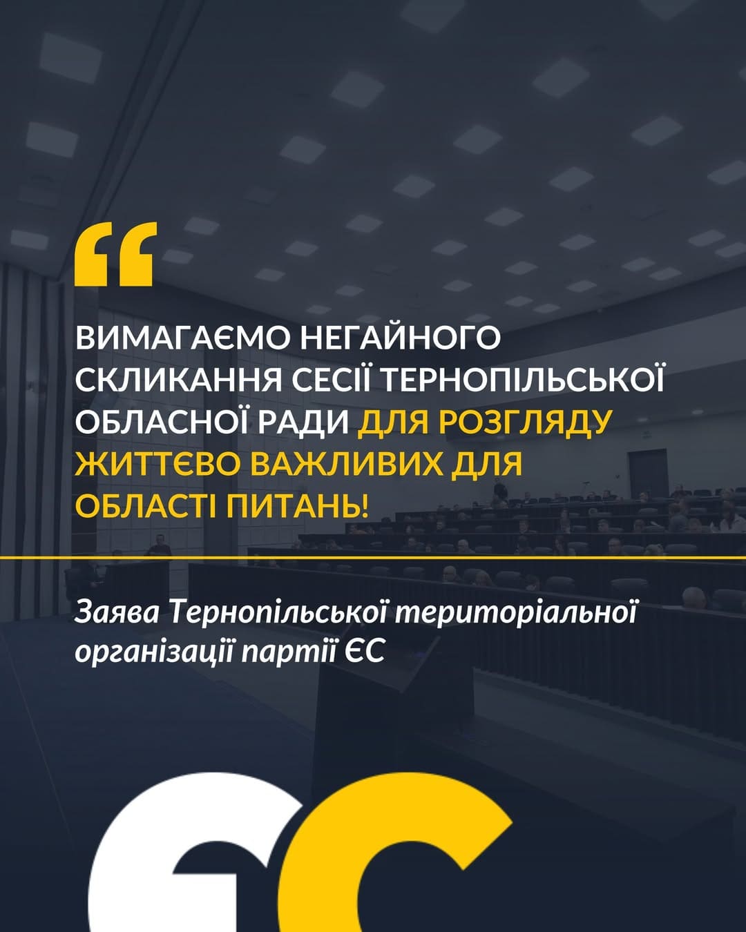 У зв’язку з цим фракція «Європейська Солідарність» у Тернопільській обласній раді вимагає негайного скликання сесії для розгляду життєво важливих для області питань. Політична сила також закликає керівництво обласної ради проявити відповідальність, забезпечити прозору і ефективну роботу представницького органу та відновити довіру громадян до місцевого самоврядування.