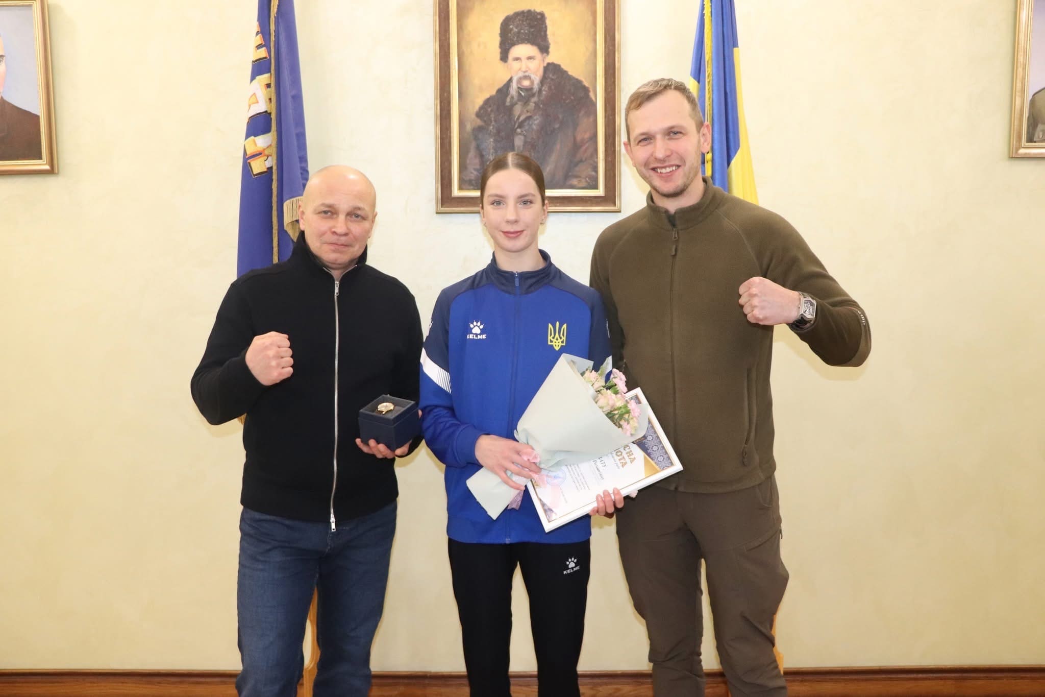 Голова обласної ради подякував боксерці та її наставникам і побажав Олександрі міцного здоров’я та нових спортивних звершень.