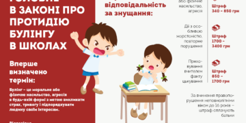У рамках цього закону до відповідальності можуть бути притягнені діти, їхні батьки, вчителі та директор школи. За моральне або фізичне насильство та агресію у будь-якій формі кривдникам загрожуватиме штраф на суму від 340 до 850 грн. Якщо