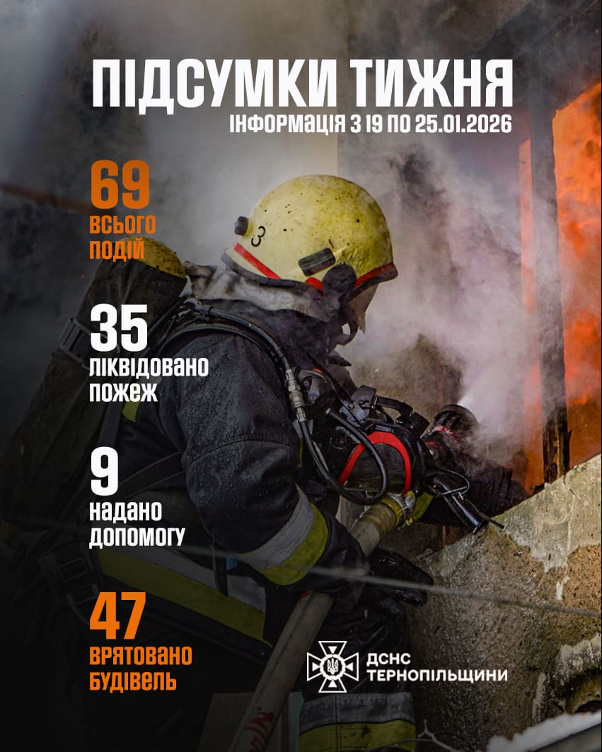 За інформацією Головного управління ДСНС України у Тернопільській області, за сім днів надзвичайники ліквідували 35 пожеж у житловому секторі та на відкритих територіях. Завдяки оперативним діям вдалося врятувати від знищення вогнем 47 будівель.