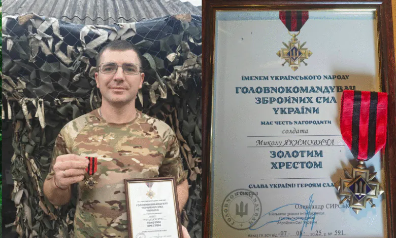 «Щиро вітаємо нашого Захисника Миколу Якимовича із заслуженою нагородою — Золотим хрестом! Дякуємо за службу, відданість і незламність».