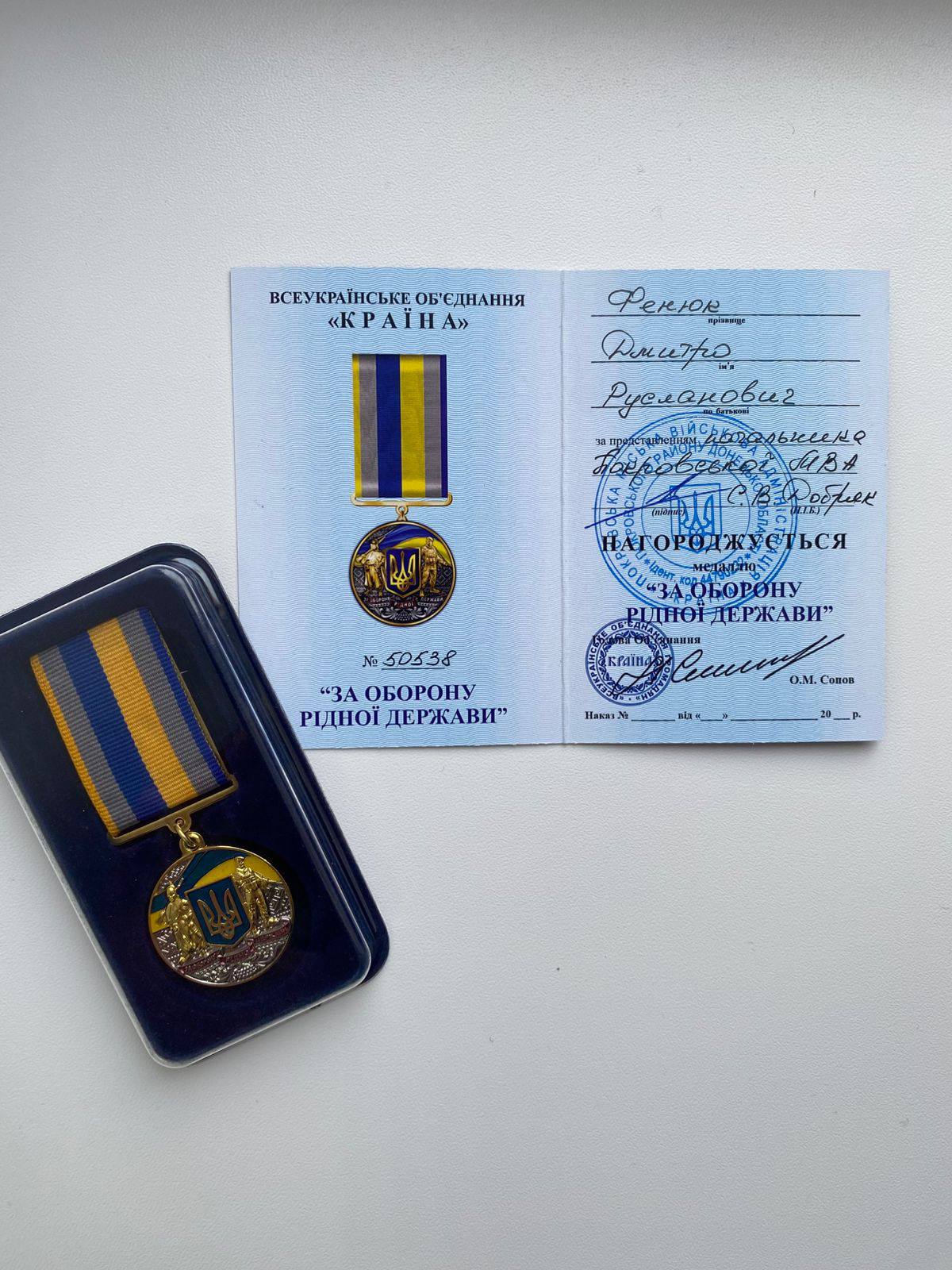 • Медалі «За оборону рідної держави» – за самовіддану службу, стійкість і захист української землі в найскладніші часи.