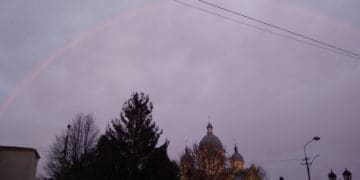 Райдугу побачили учора, 6 листопада о 7.12 ранку. Світлинами рідкісного для осені явища поділилася Iryna Kovalchuk. Мешканці Тернопільщини заявляють, що побачити веселку над храмом – це хороший знак.